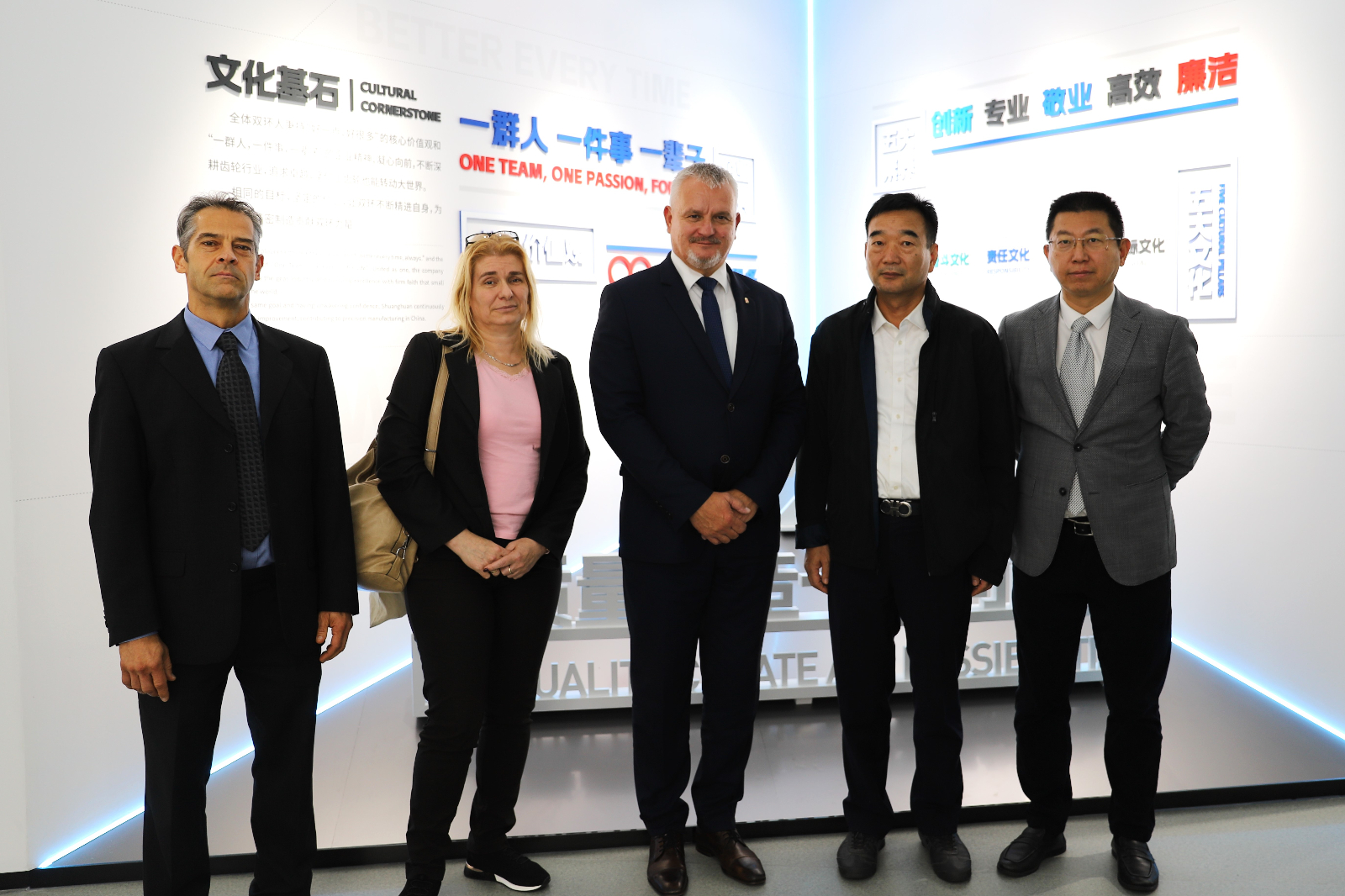 在匈牙利當地被“中國速度”和“雙環速度”所震撼,10月19日-23日,匈牙利亞斯-瑙吉孔-索爾諾克州州長Dr. Berkó Attila、州政府環境和自然保護及廢棄物管理部門負責人Dr. Nemes Gábor、建筑和遺產保護部門代表Ms. Stomfainé Polgár Katalin一行專程來到中國,蒞臨雙環傳動參觀考察,并先后考察上海、桐鄉、杭州、玉環,親身感受博大精深的中國文化以及中國經濟社會發展情況。